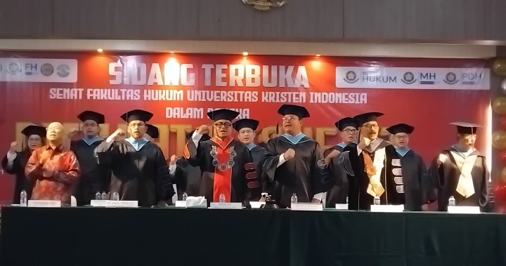 Tampak hadir pada Dies Natalis ke-67, Thomas Tampubolon (Pengurus Yayasan UKI), Prof. Dr. Dhaniswara K. Harjono (Rektor UKI), DR. Hulman Panjaitan (Wakil Rektor), Prof. Dr. John Pieris (Guru Besar Hukum Tata Negara UKI), Dr. Jimmy Simanjuntak (Ketua Senat FH UKI), Dr. Tomson Situmeang, (Wakil Dekan), dan lainnya. (lian)